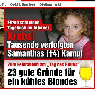 Bild.de: Saufen für Samantha? 23/04/2008 Off By christiankohl Heute auf der Startseite von bild.de zu sehen: